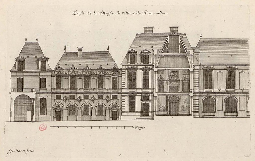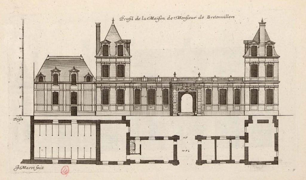 Bretonvilliers, a financier and secretary to the council of Louis XIII, and one of the richest men in France, commissioned the architect Jean Androuet du Cerceau to build the main house and Pierre Le Muet was engaged to build six dependencies.