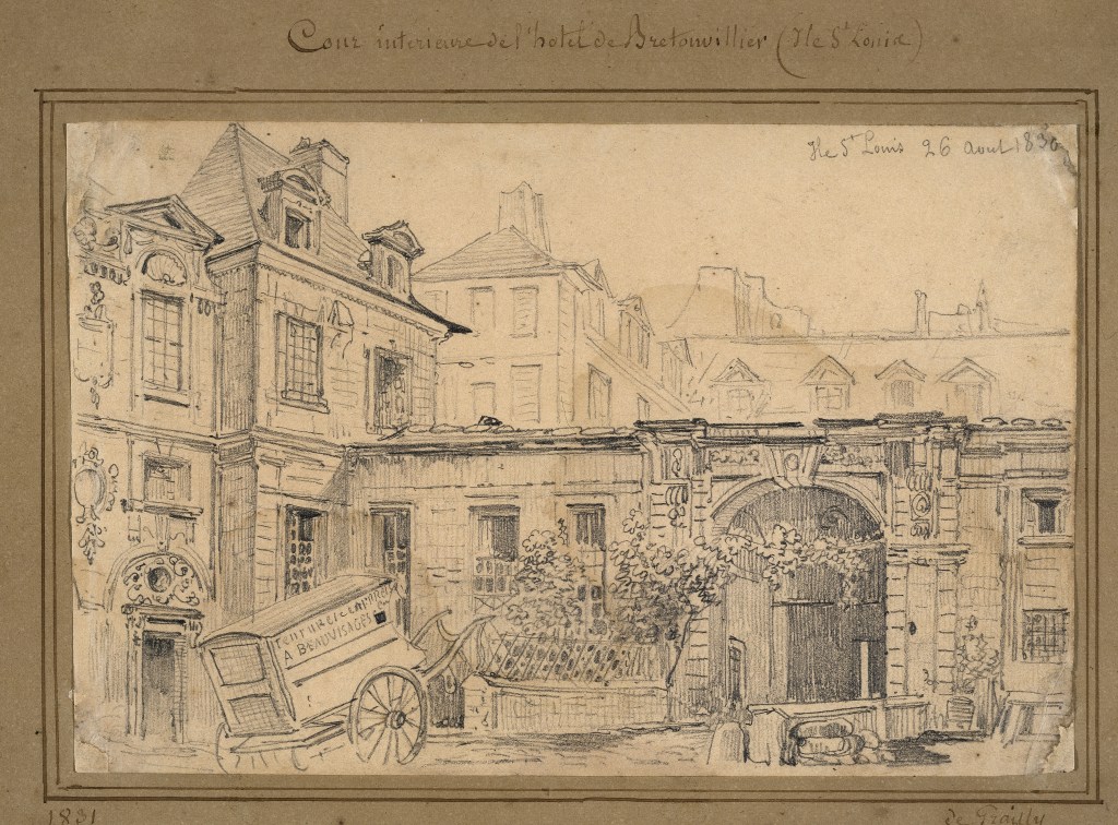 All that remains of the original hôtel is the pavilion that now straddles the entrance to rue Bretonvilliers. That structure has been a listed historic site since 1986. Some of the remaining dependencies of the Bretonvilliers remain however. Those structures can still be found at Nos 1, 3, 5, 7 & 9 rue Saint-Louis en l’Île.