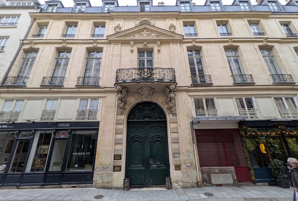The Hôtel de Chenizot is one of the most recognizable sites on the island at 51 rue Saint-Louis en l’Île. Its façade and many architectural elements are protected, but much of the period charm one sees now is the result of 18th century renovations.