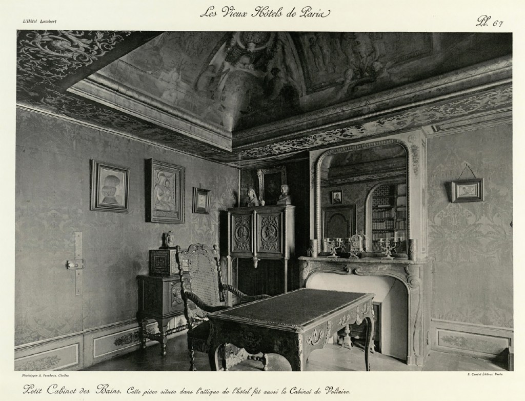 The home was sold again in 1739 and passed to the Marquis de Châtelet who was married to Gabrielle Le Tonnier de Breteuil, Marquise de Châtelet, a noted mathematician and physicist. The Marquise was a well known intellect and mathematician of the time, but she is also known for her many lovers, including a long affaire with Voltaire who was a guest at the Lambert and had an office there in 1742.