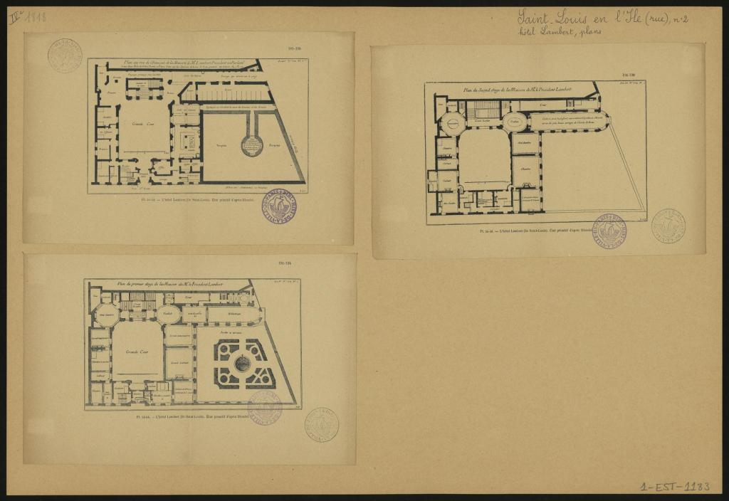 A point of note: The Rothschild archive makes mention of the expansion of the Lambert saying, “After Le Vau’s death in 1670, his hôtel was bought by the La Haye family, who enlarged the property.”, but La Haye didn’t purchase the Lambert until well after that date. The Lambert could have been expanded before that date, or the above quote could be correct with the addition of the other buildings taking place years well after Le Vau’s death. The addition of the buildings along the quai d’Anjou greatly expanded the footprint of the house.