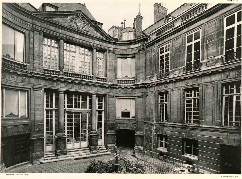 Architecturally, the building is unique for its unusual layout and orientation. The odd shape of the plot required a design that veered from norms of the period. Most of the Hôtel Particulier of the time followed a linear design where one entered the home from the street through gates into a central courtyard with the main house facing and circling you as you enter and then the garden behind the main house one after the other.