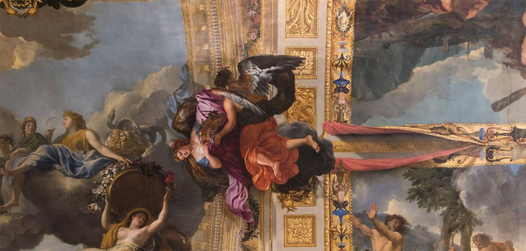 Nicolas Lambert, Jean-Baptiste’s brother, a wealthy financier known as “Lambert le Riche”, inherited the house, and it is he who is responsible for most of the lavish decoration that we come to associate with the house today. Nicolas engaged established and rising artists of the time, François Perrier, Eustache Le Sueur and Charles Le Brun to decorate the home. It is the latter, Le Brun, who is credited with one of the mansion’s many extraordinary decorative achievements, the ceiling of the Galerie d’Hercule.