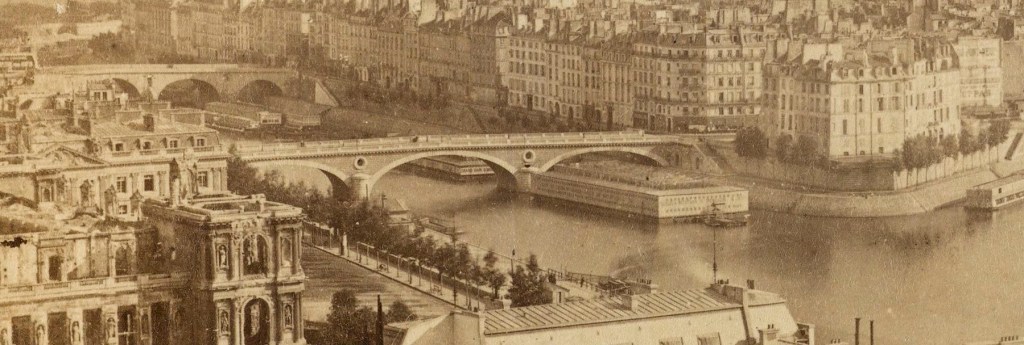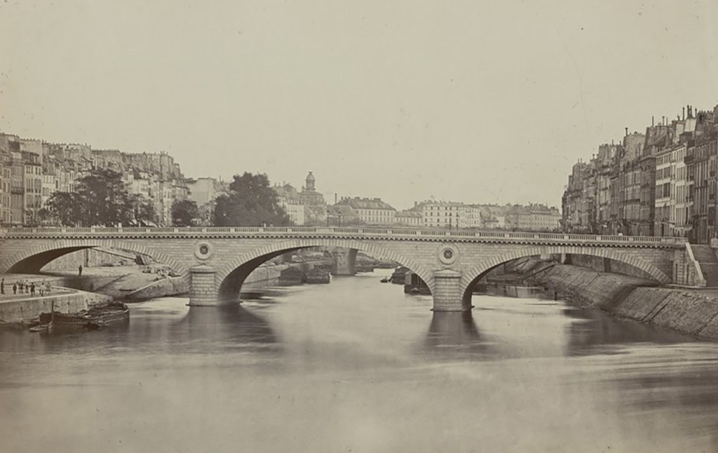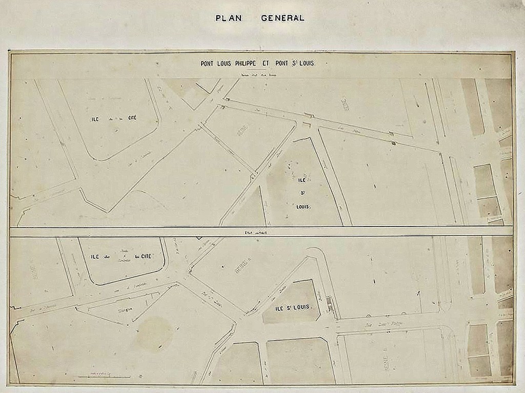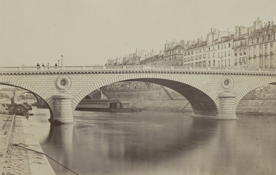 On the 1st of August, 1860 a decree was issued ordering the creation of the new bridge and also the replacement of the Passerelle de la Cité (now the site of Pont Saint-Louis). The decree also ordered the opening of a street (now Rue Jean du Bellay) linking the two bridges and cutting through what was once a densely packed residential block on the western end of the island.