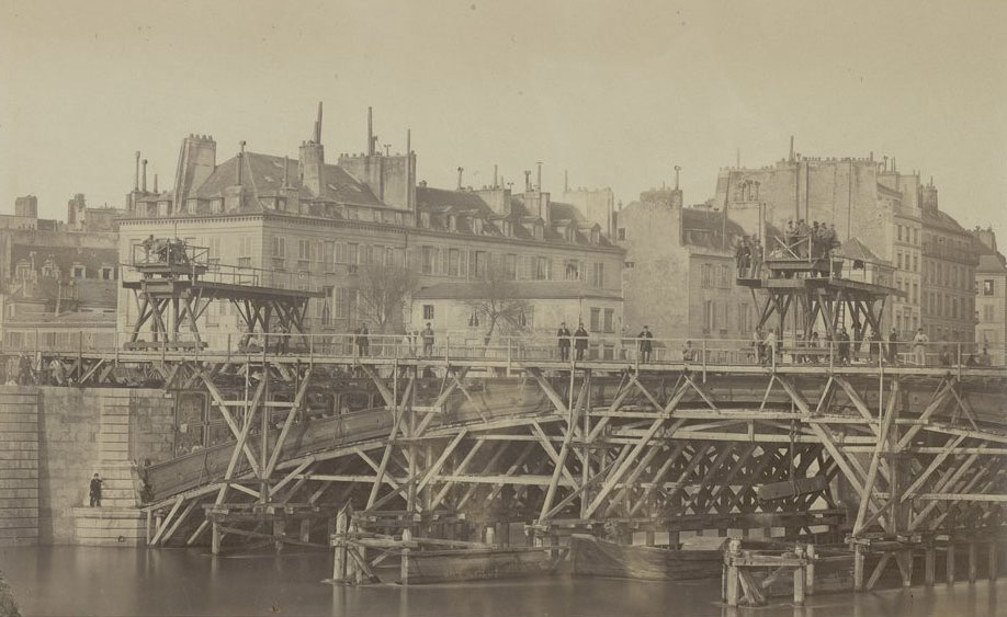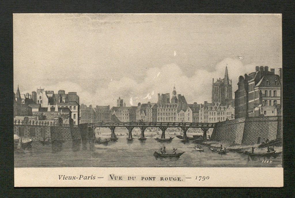 The bridge was destroyed by flood and rebuilt several times until it was replaced in 1717 by a wooden bridge that became known as Pont Rouge. That bridge was painted with minium, also known as red lead or red lead oxide, and this pigment gave the bridge its distinctive color and hence its name, Red Bridge. That bridge was finally removed in the latter part of the 18th century.